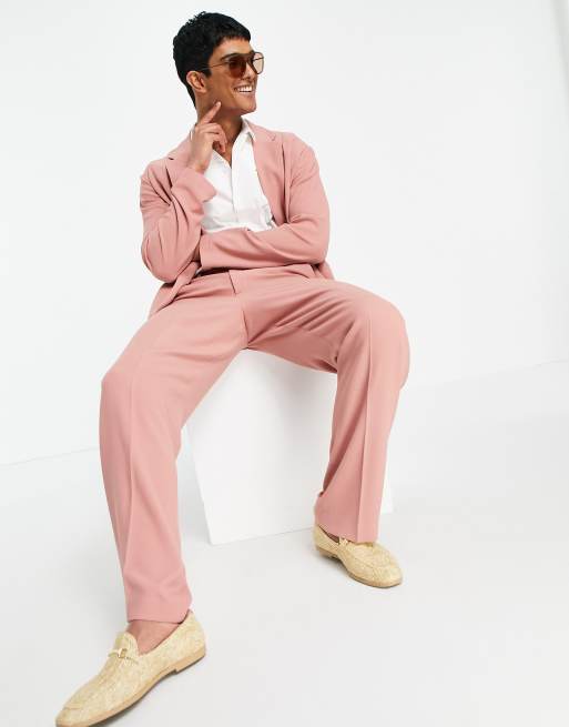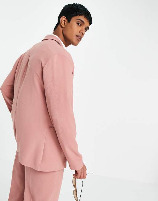 Asos Design Soft Tailored Relaxed Oversized Suit Jacket In Pastel Pink Crepe Asos